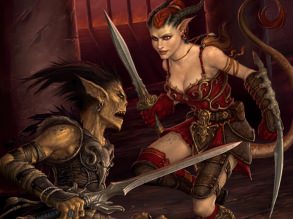 Сексуальная демонесса с кинжалом и луком.