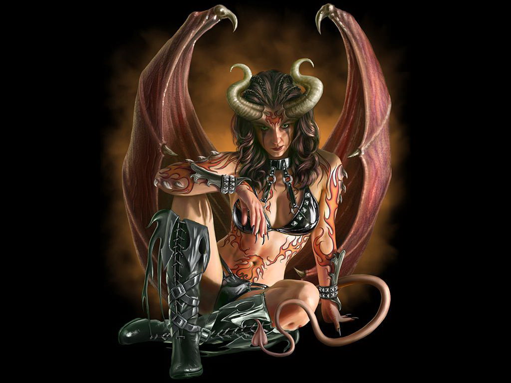 Демонесса, с, тату, девушка, демон, с, крыльями, с, рогами, хвост