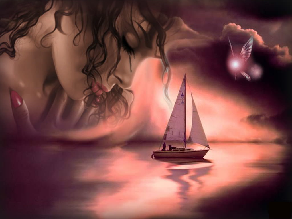 Кораблик, девушка, бабочка, море.