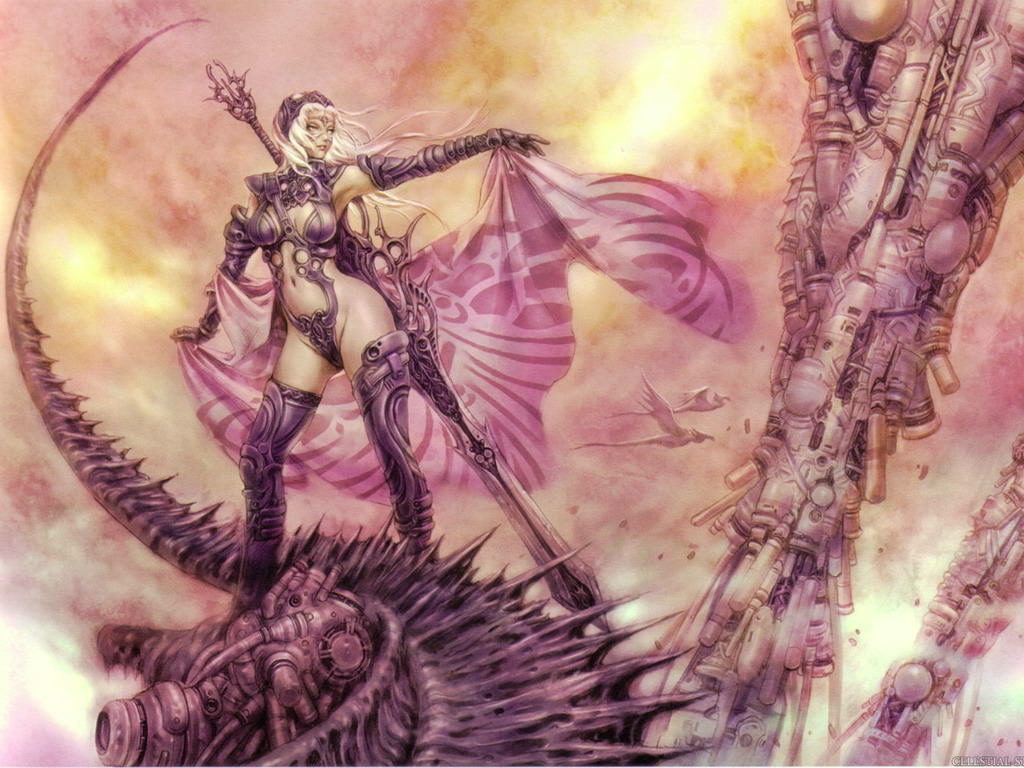 Огромный, меч, девушка, с, мечом, на, колючем, хвосте, зверя