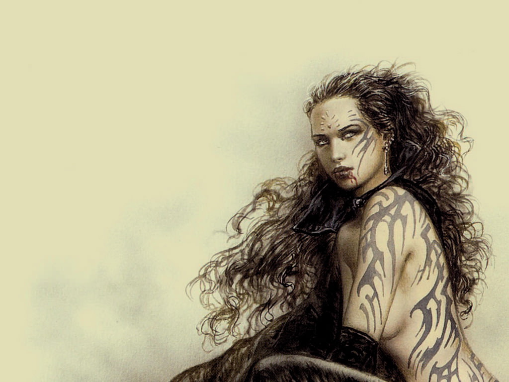 Кровь на губах, тату на теле, обнаженная девушка в тумане.