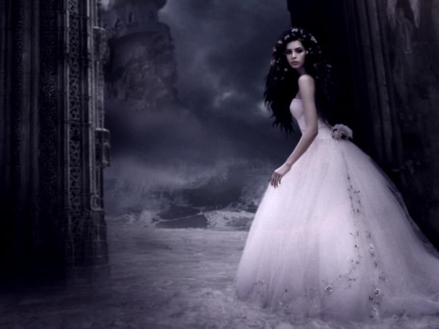 "Мертвая невеста" в белом платье во тьме, в тумане.