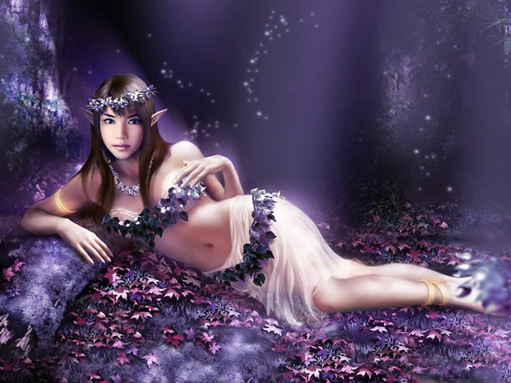 Эльфийка, в, цветах, очаровательная, эльфийка, с, венком