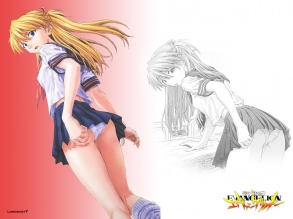 Аниме, девушка, в, белых, носочках, на, кровати, трусики, в, полоску, под, юбкой