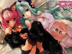 Юри поцелуй на кровати, девушки с красивыми обнаженными сиськами целуются.