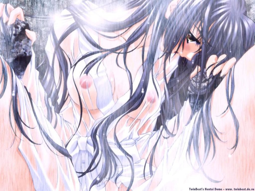 Хентай опустошенная, уставшая девушка с обнаженной грудью.