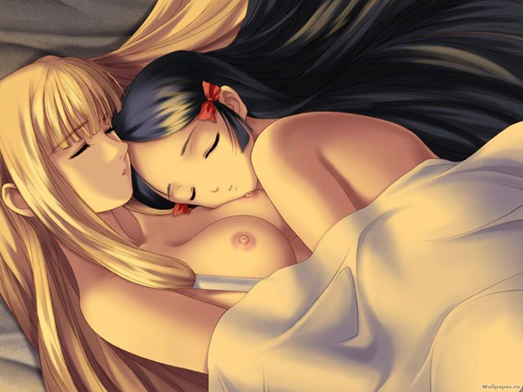Юри в объятиях, голые девушки лежат в объятиях укрывшись одеялом.