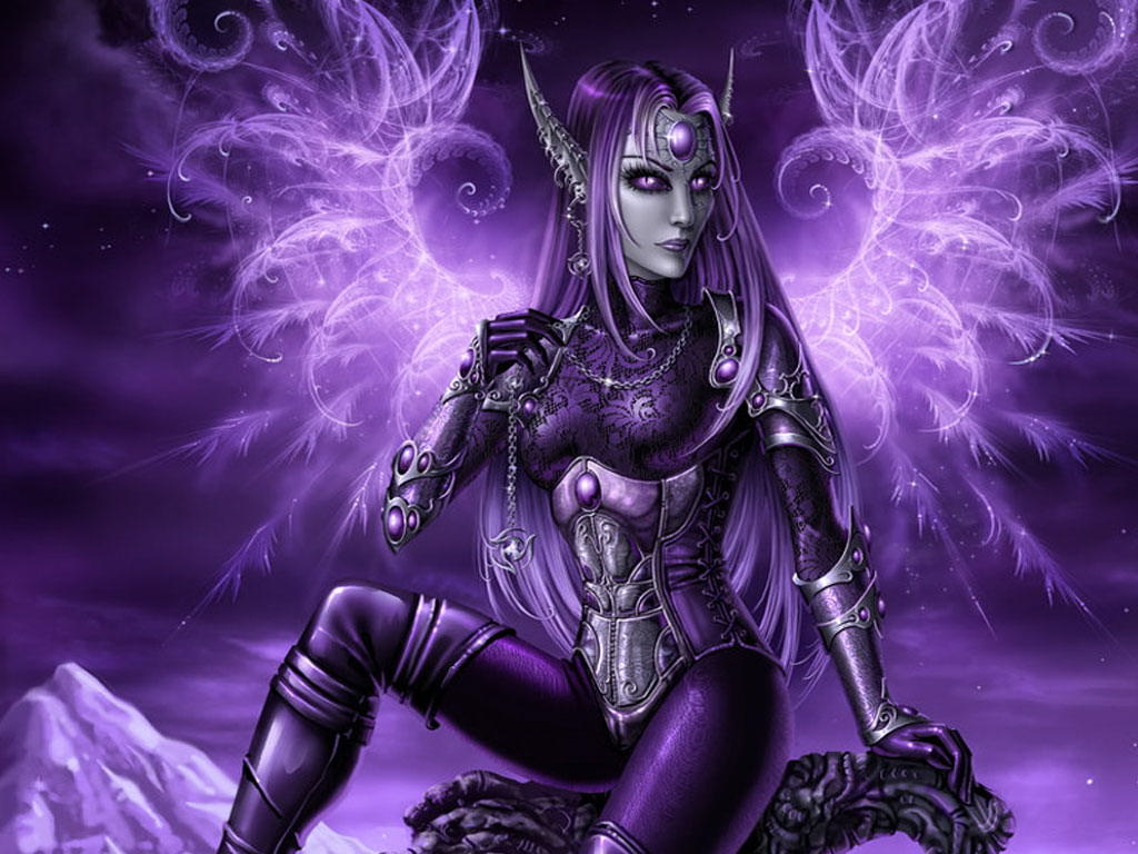 Очаровательная колдунья с фиолетовыми крыльями, аметист.