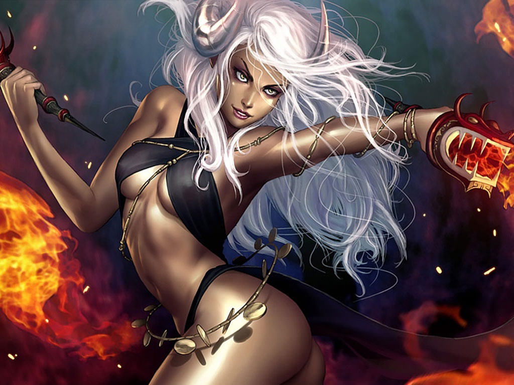 Сексуальная волшебница управляющая пламенем, красивая огненная волшебница.