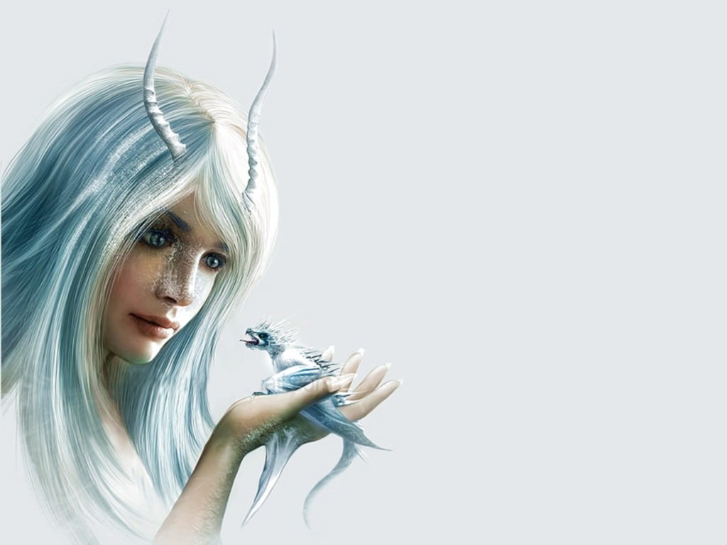 Белоснежная, девушка, и, дракончик, девушка, с, рогами