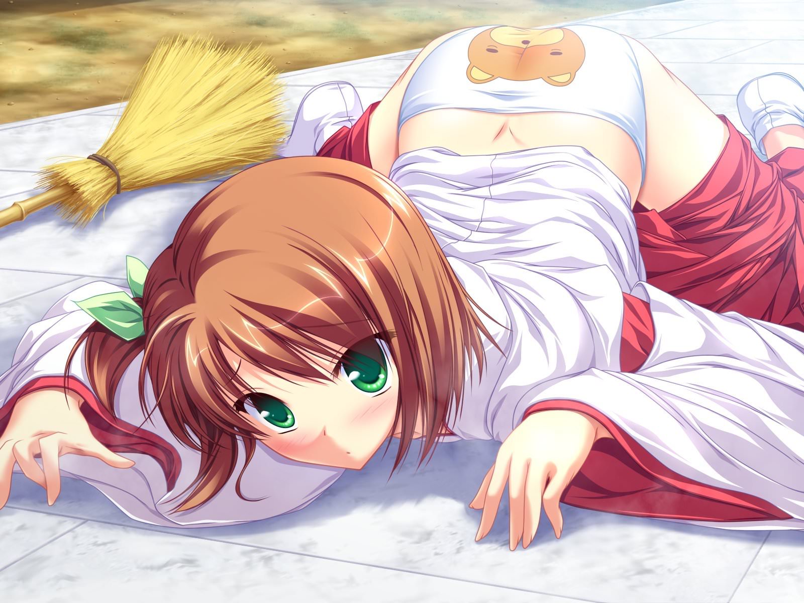 Девочка с метлой, подскользнулась и упала, трусики с медвежонком.