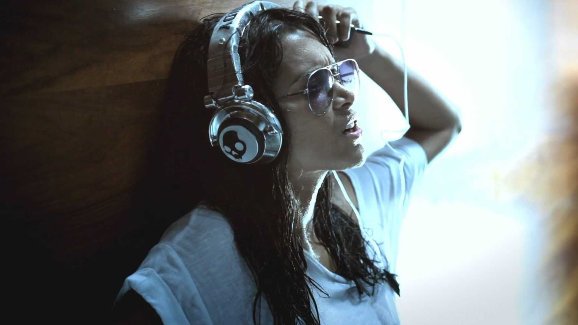 Сексуальная девушка в очках Рэй Бэн и в больших наушниках. белая футболка, страсть, соблазн, justgirls (76).