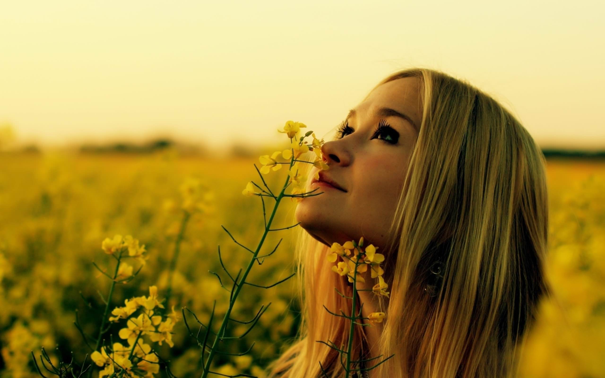 Красивая девушка нюхает цветок в поле, обаятельная милая светловолосая девушка в цветочном поле наслаждается запахами природы, justgirls (80).