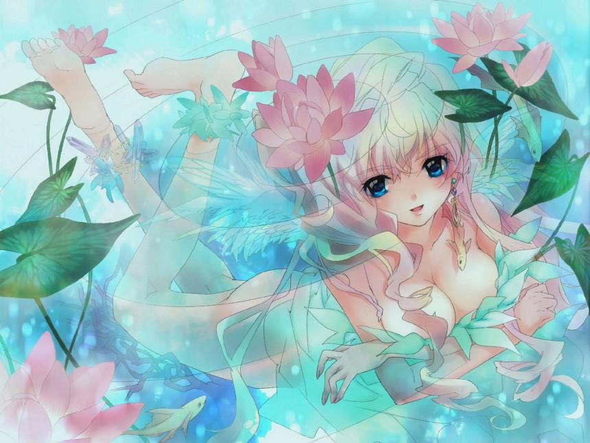 "Цветочная", девушка, красивая, обнаженная, девушка, купается, в, воде, цветы, и, рыбки, голубоглазая, блондинка, купается, голая, в, прозрачной, воде, с, цветами