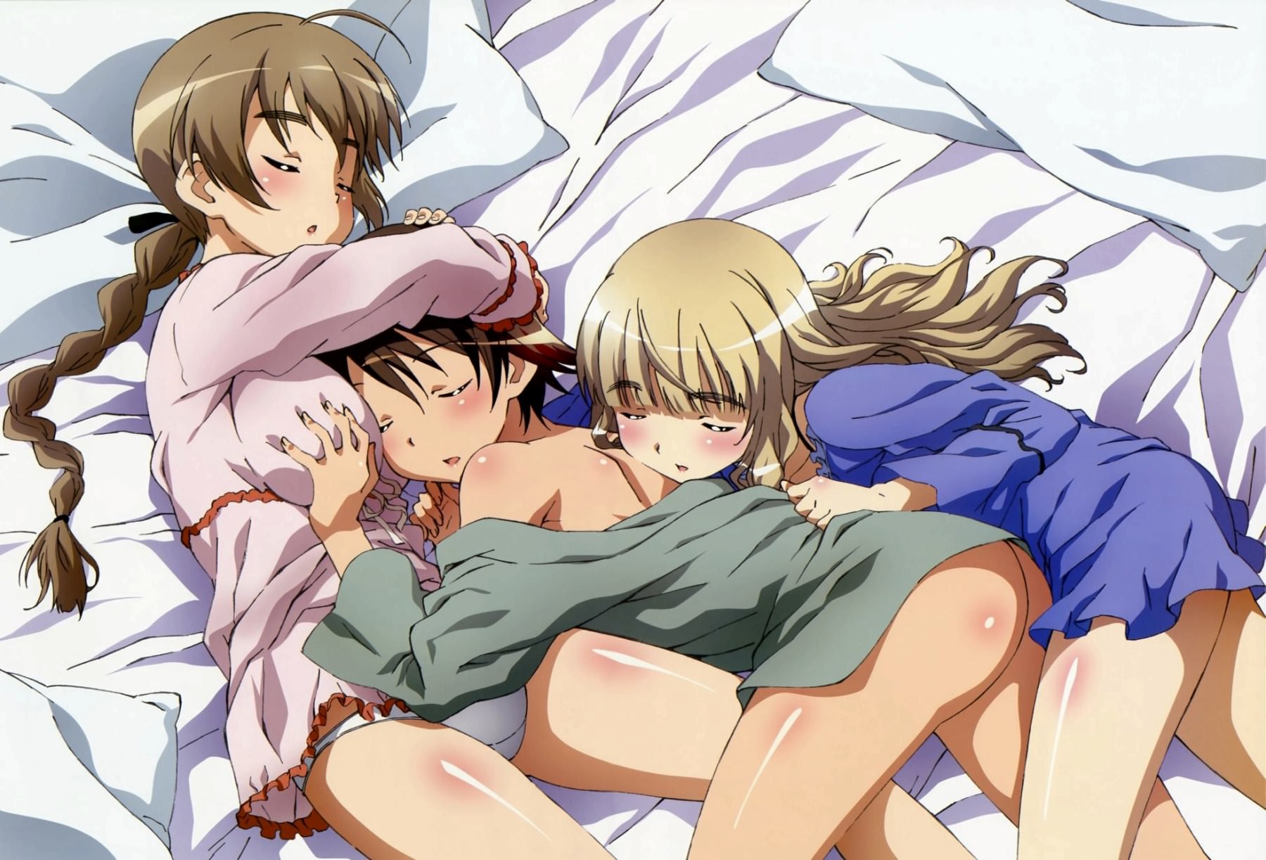 Три сладкие девочки уснули в объятиях друг дружки, розовые попки и нежные сексуальные ножки.