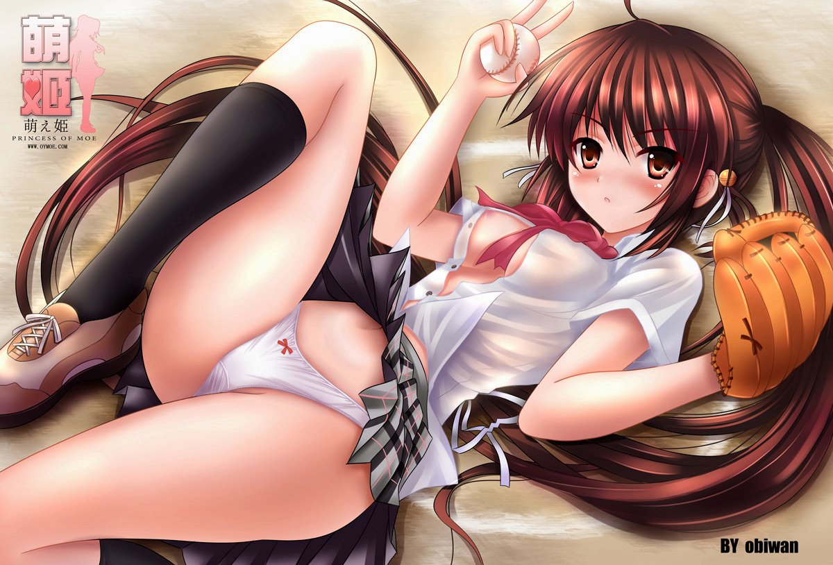 Сексуальная девушка с бейсбольным мячиком и перчаткой, возбуждающая спортивная девушка в длинных носочках, в белых обтягивающих трусиках, в короткой юбочке, в прозрачной белой расстегнутой блузке, оголенная грудь.