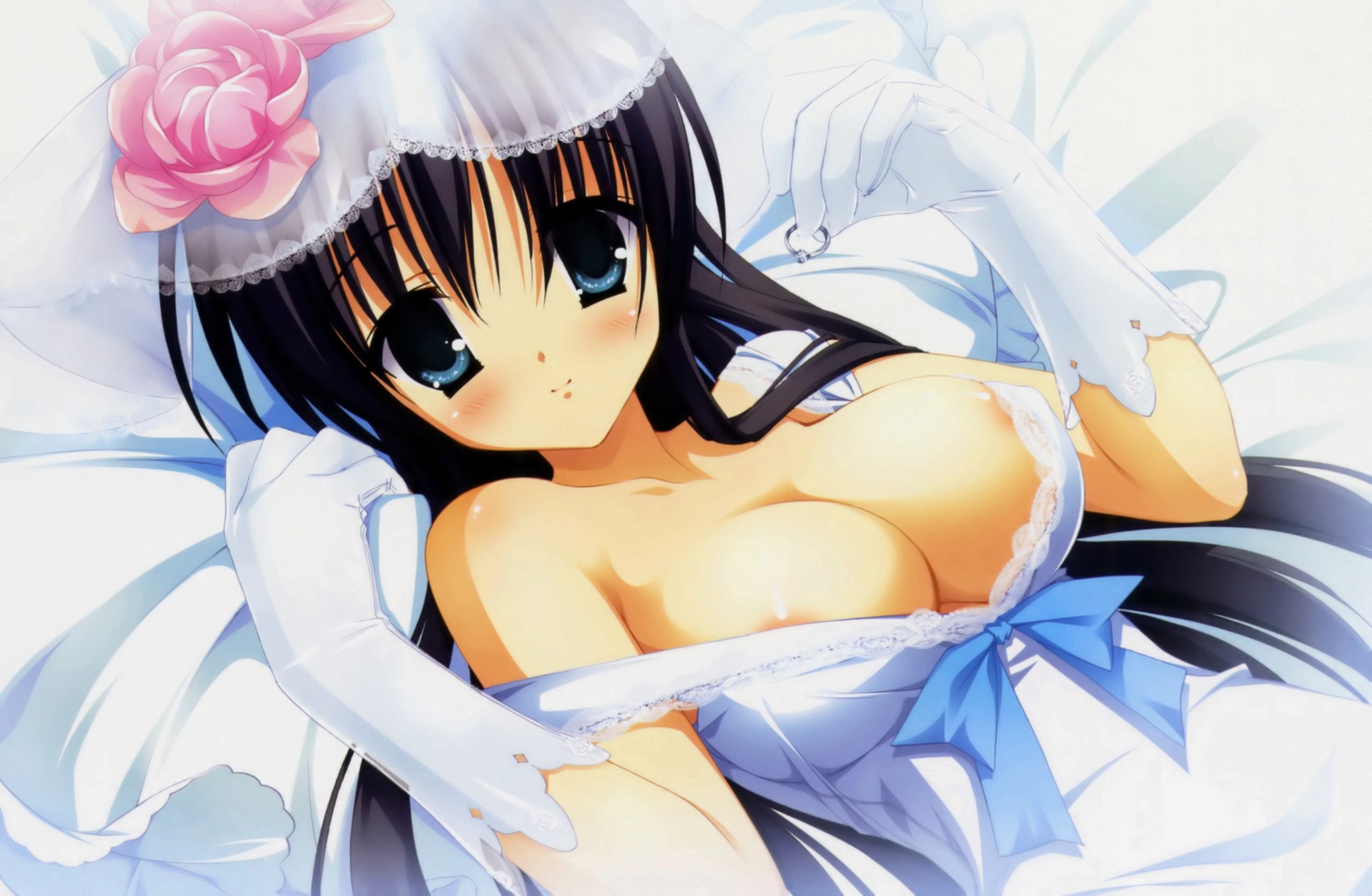 Невеста показала свои классные сиськи, брюнетка невеста в белом платье и перчатках, оголяет свою прекрасную грудь, аппетитные сиськи прекрасной невестки.