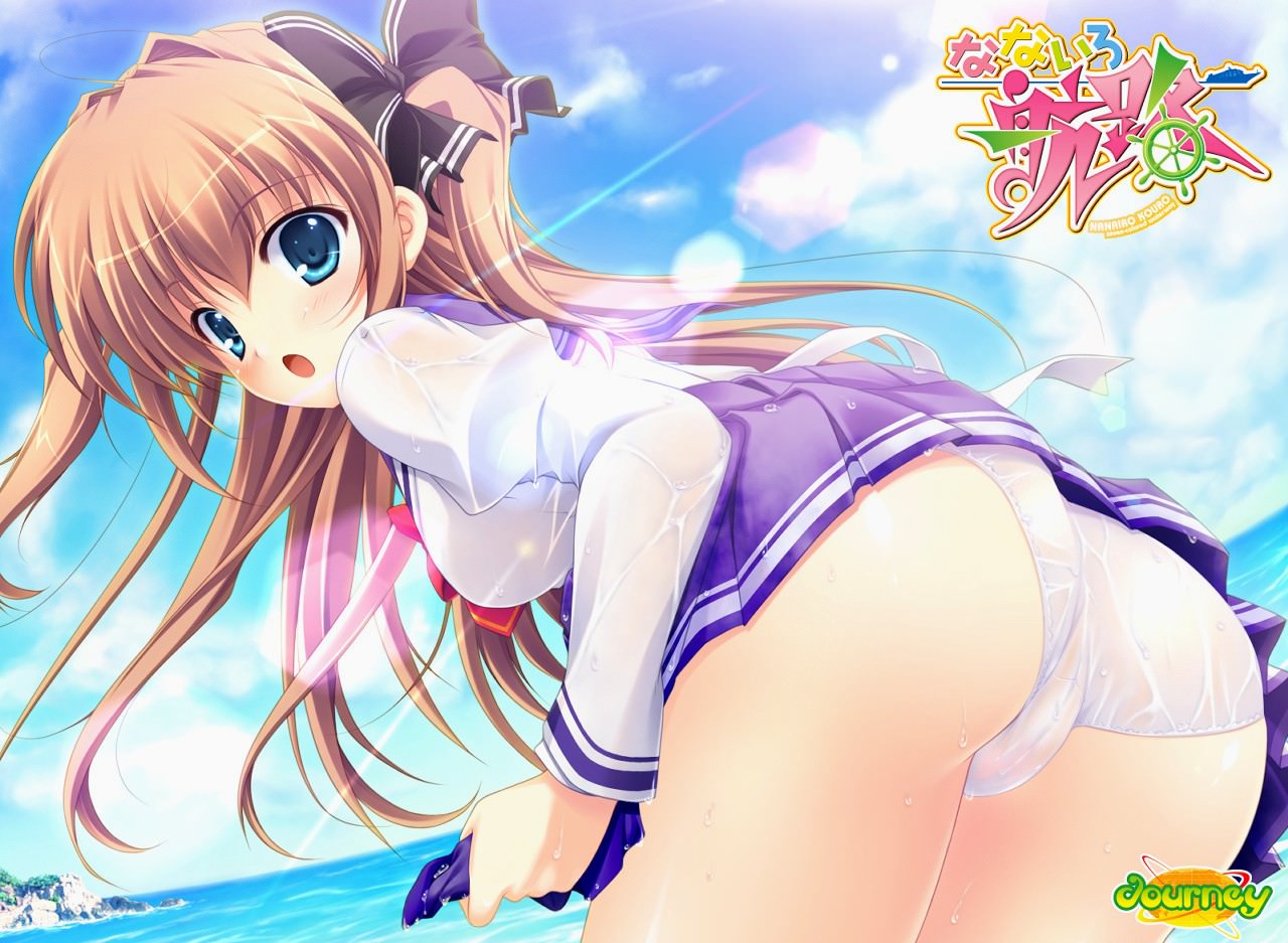 Девушка в школьной форме прогуливается по воде, школьница в промокших трусиках под короткой школьной юбкой, красивая и сексуальная старшеклассница на море.