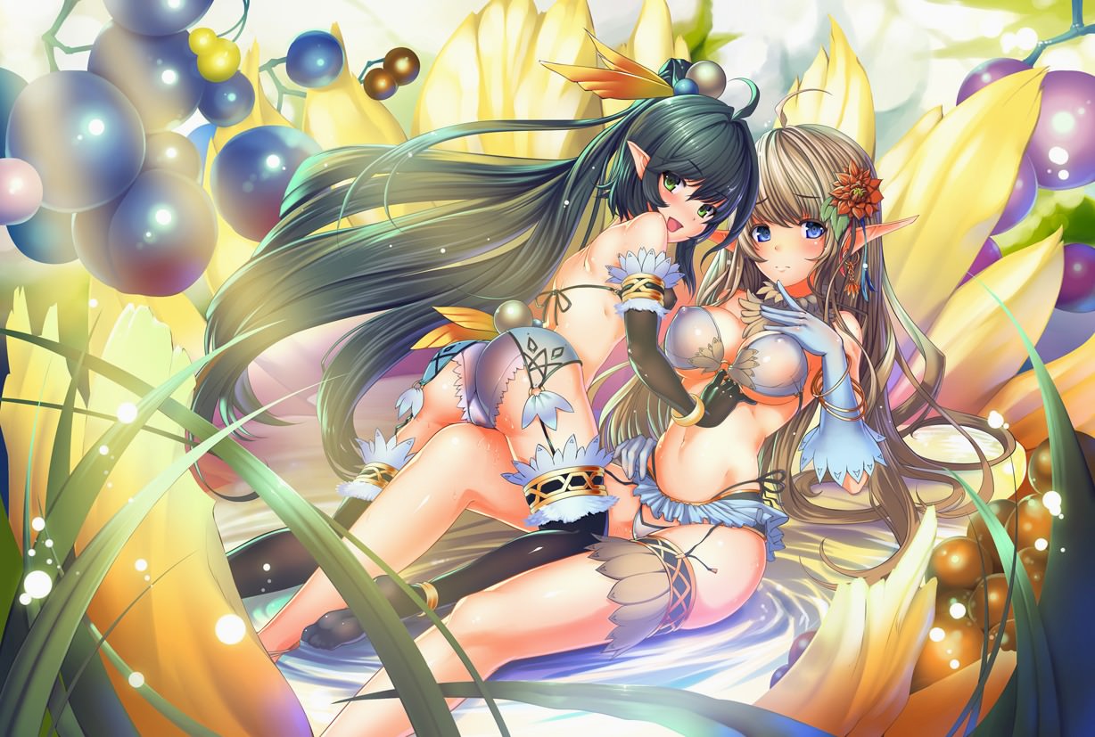 Девушки уединились в фэнтези лесу для интимных ласк друг с другом, очаровательные и возбуждающие фэнтези девушки в объятиях друг дружки, на воде.