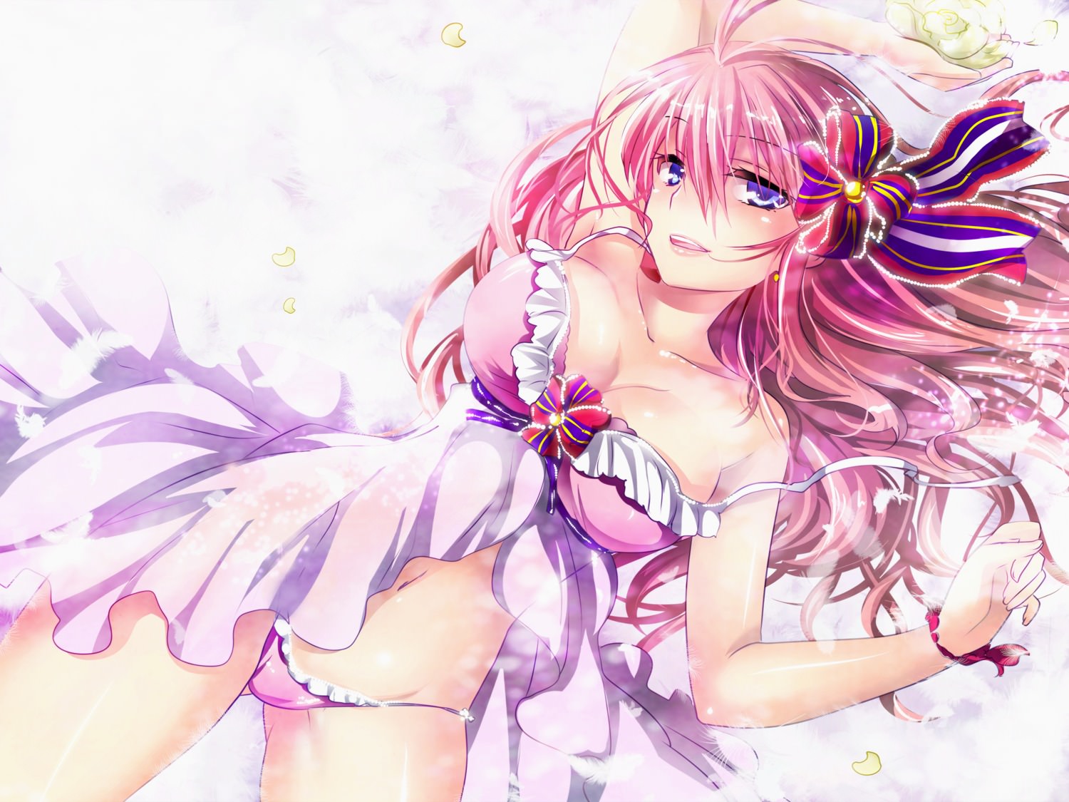 Девушка в розовом, большая грудь и сексуальные трусики, розовые волосы и светло-розовое летнее платье, в эротических маленьких трусиках.