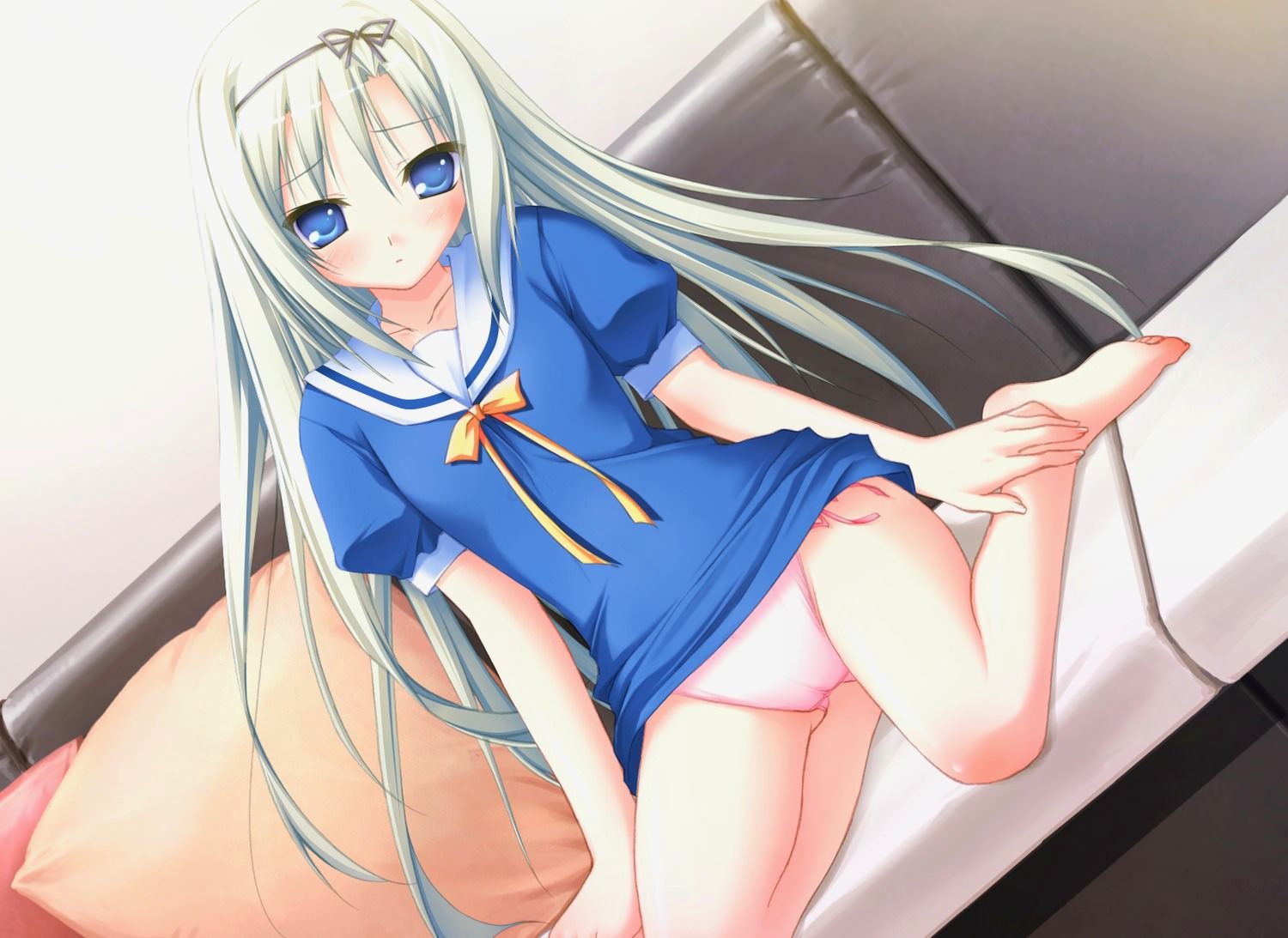 Девочка, в, розовых, трусиках, в, голубой, футболке, задумалась