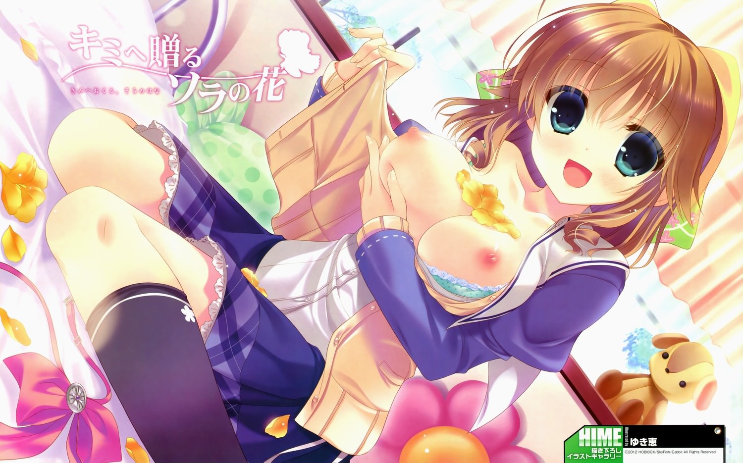 Жизнерадостная девушка демонстрирует свою грудь, показала сиськи, трогает их и улыбается.