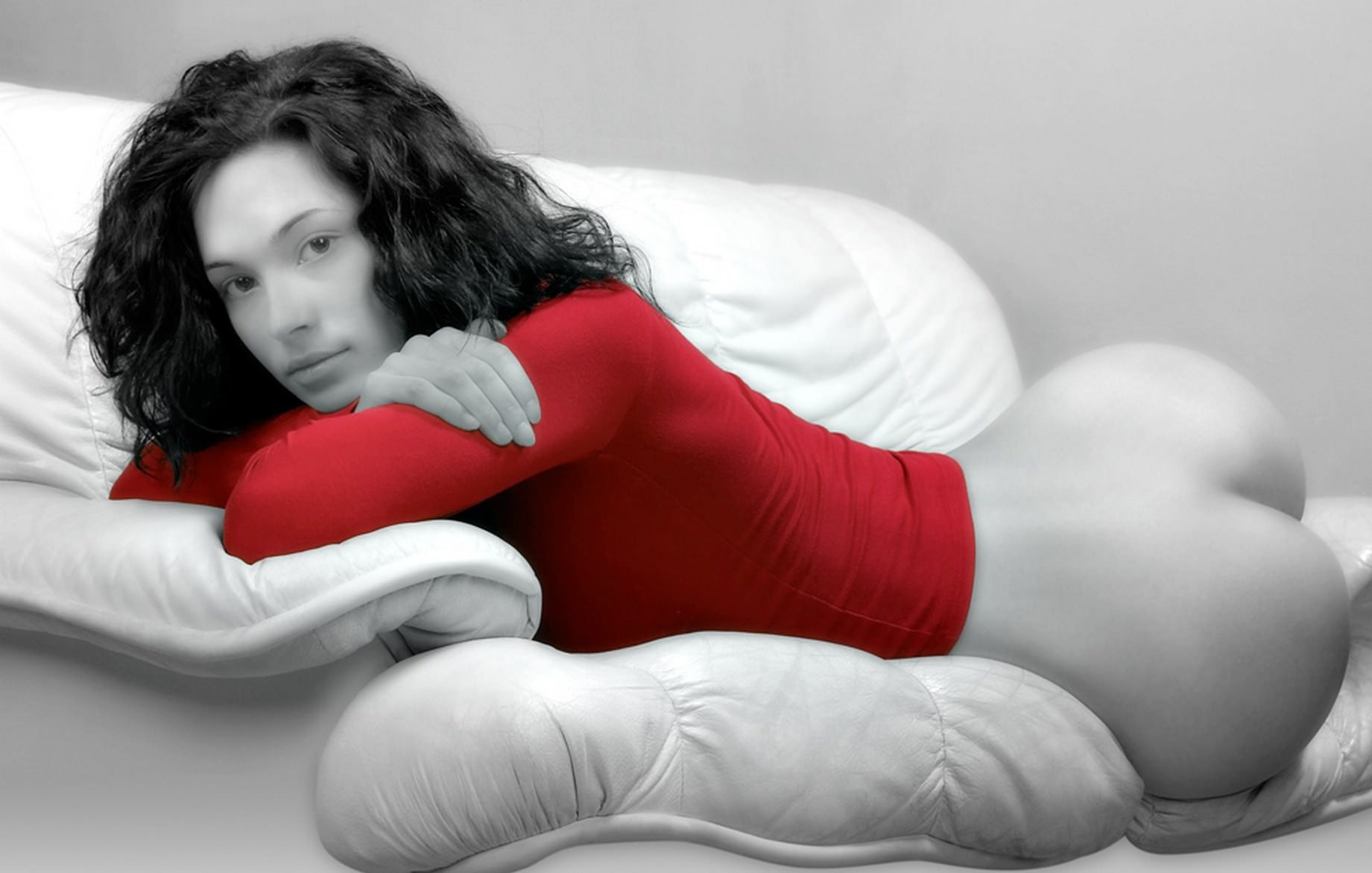Девушка, в, красной, блузке, без, трусиков, девушка, с, глянцевой, голенькой, попкой, на, мягком, диване