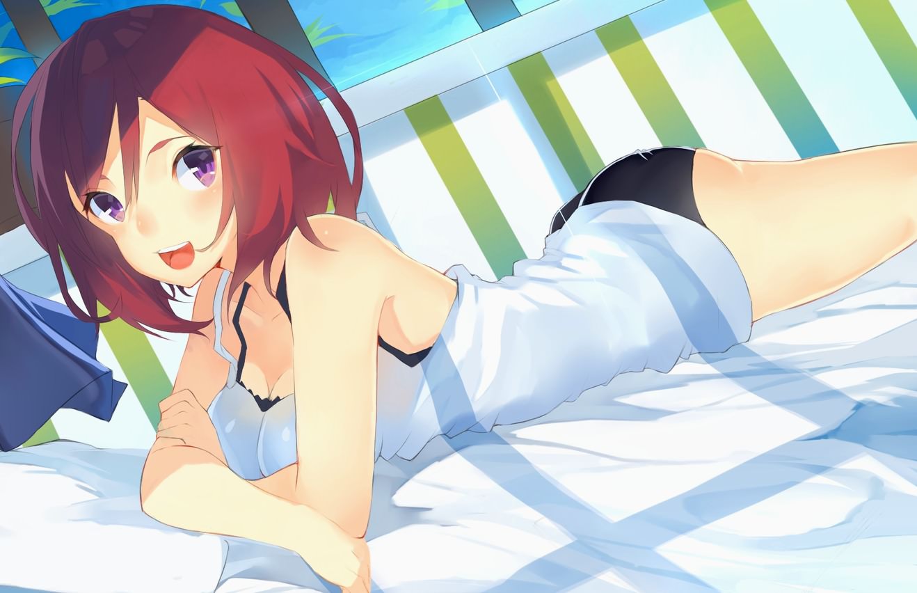 Девушка, в, белой, майке, в, черных, трусиках, хорошая, попка