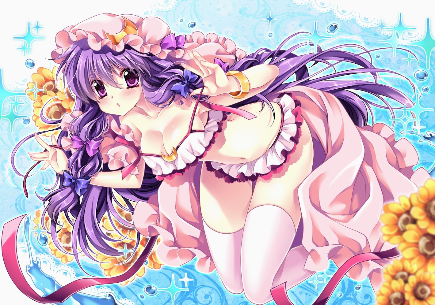 Очаровательная, аниме, девушка, в, розовых, чулках, и, платье, аниме, девушка, в, розовой, шляпке