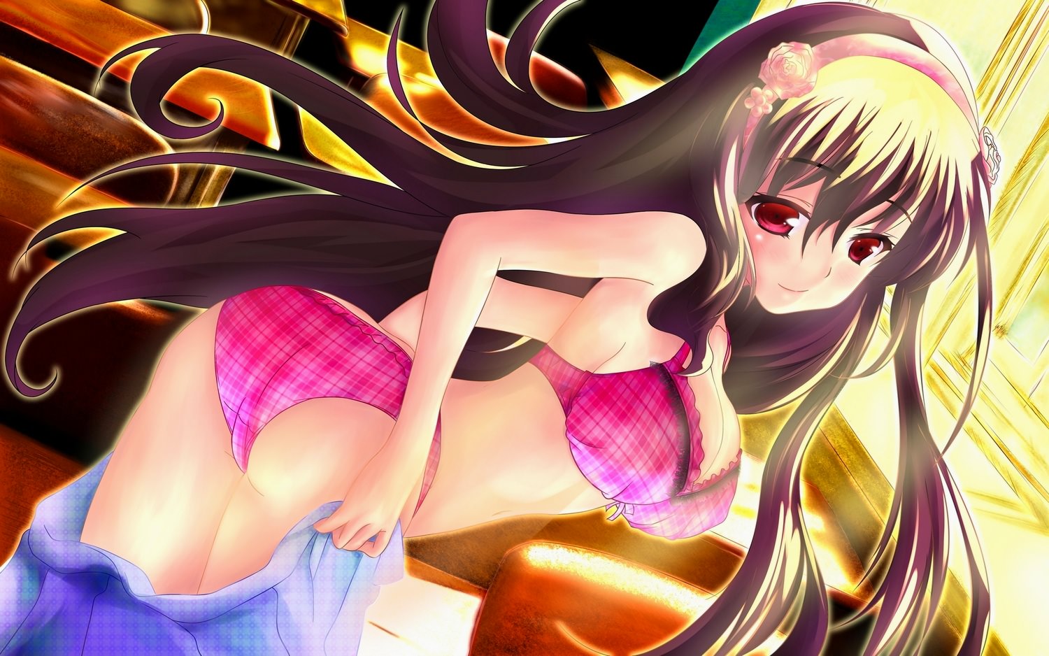 Девушка, снимает, юбку, яркие, розовые, трусики, на, милой, попке, большая, грудь, в, лифчике