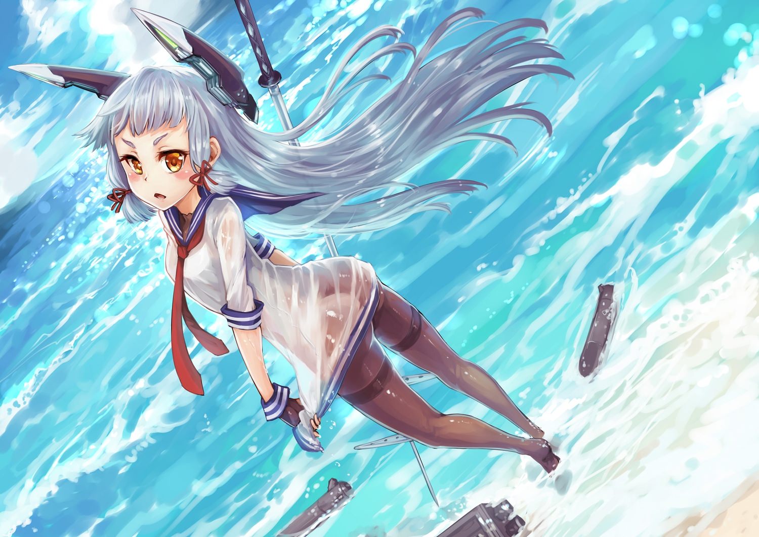 Милая школьная воительница в чулочках и прозрачной футболку, упругая сочная попка, ракеты в море.