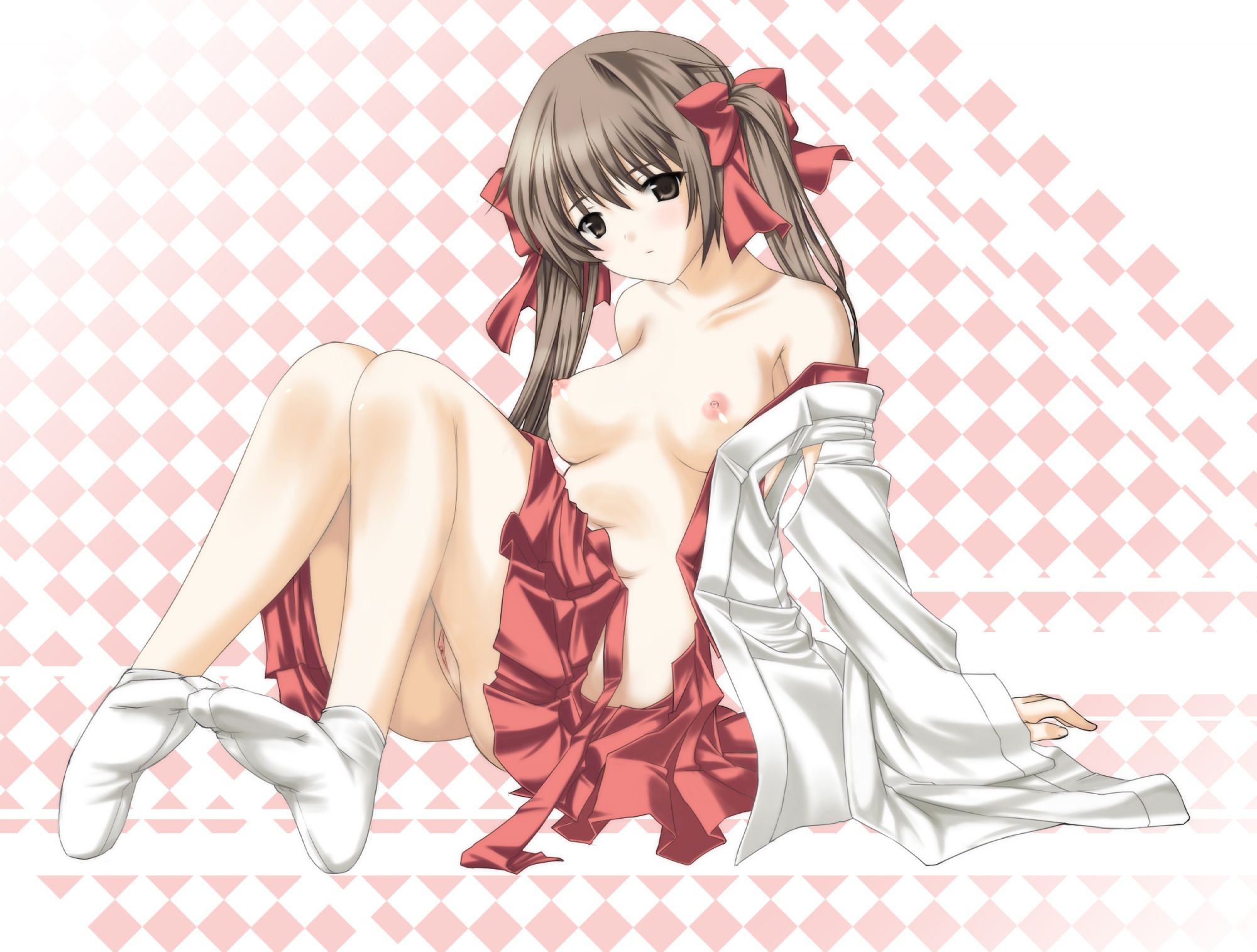 Полураздетая красивая грустняшка сидит на клетчатом полу, расстроившись по какому-то поводу.
